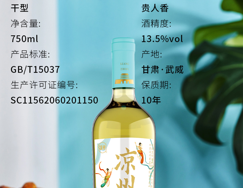 涼州生態干白葡萄酒(漢彩)手選·貴人香