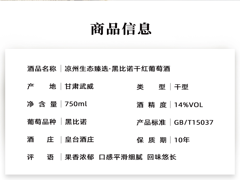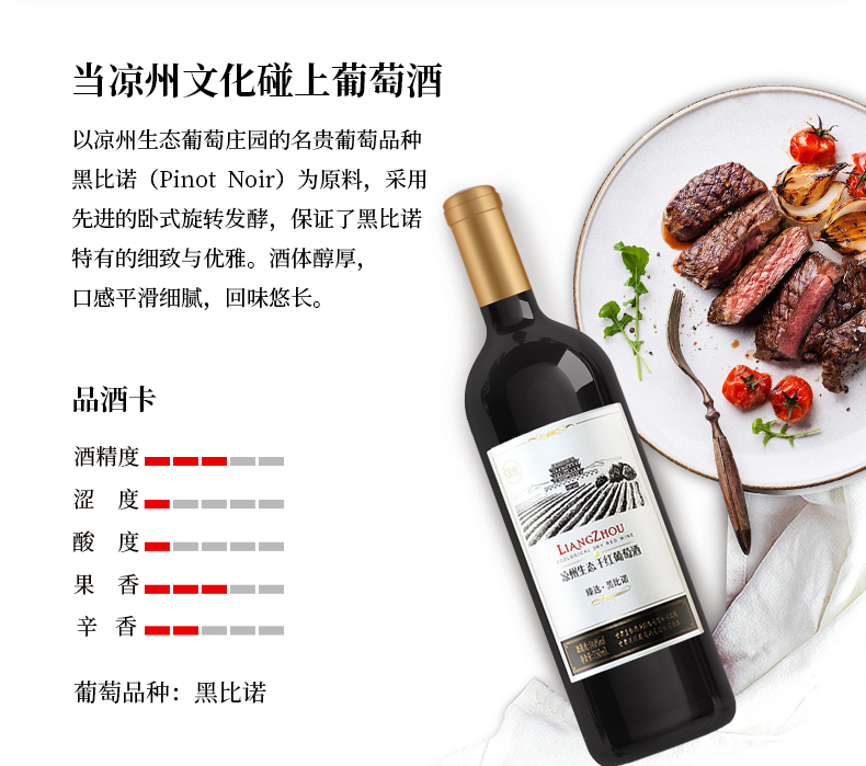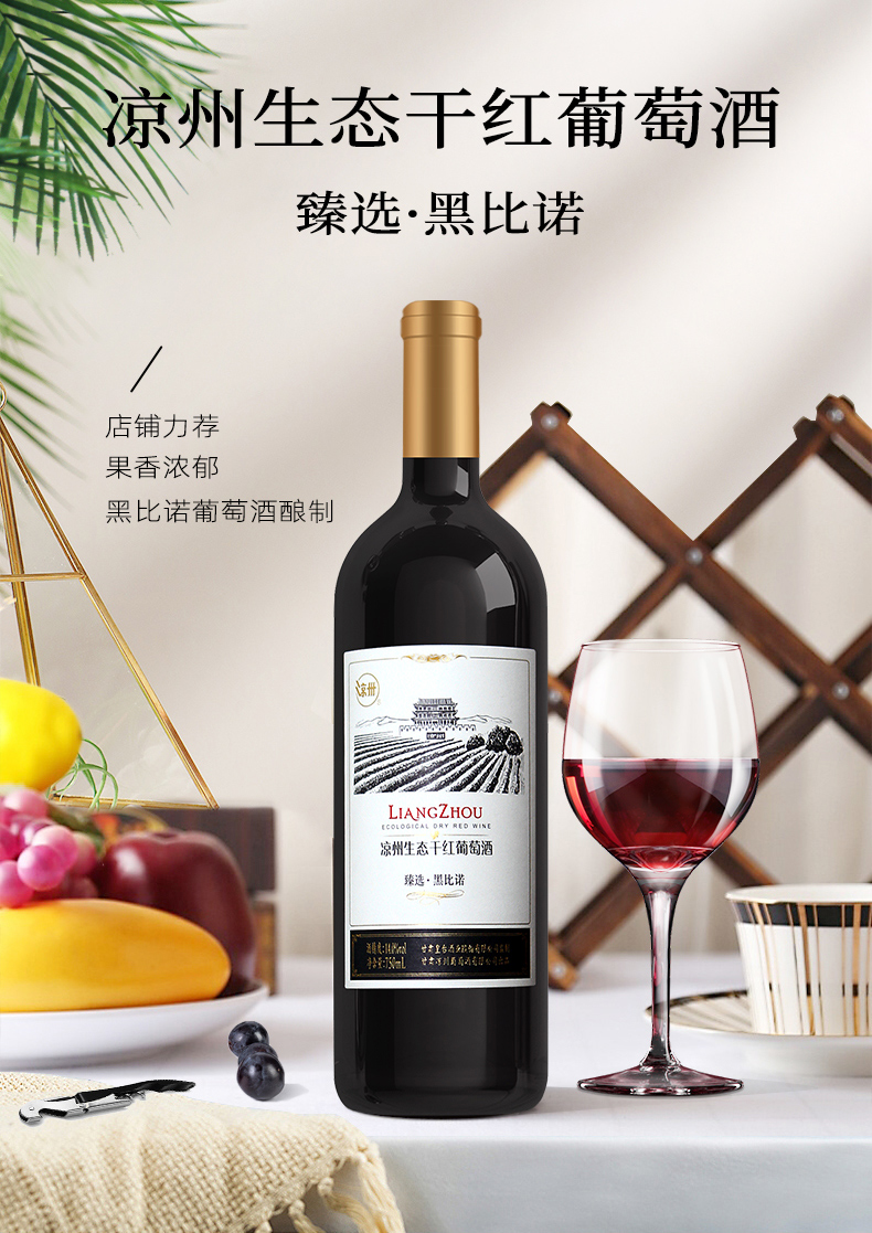 甘肅涼州生態干紅葡萄酒臻選黑比諾紅酒送禮婚宴用酒自酌750ml