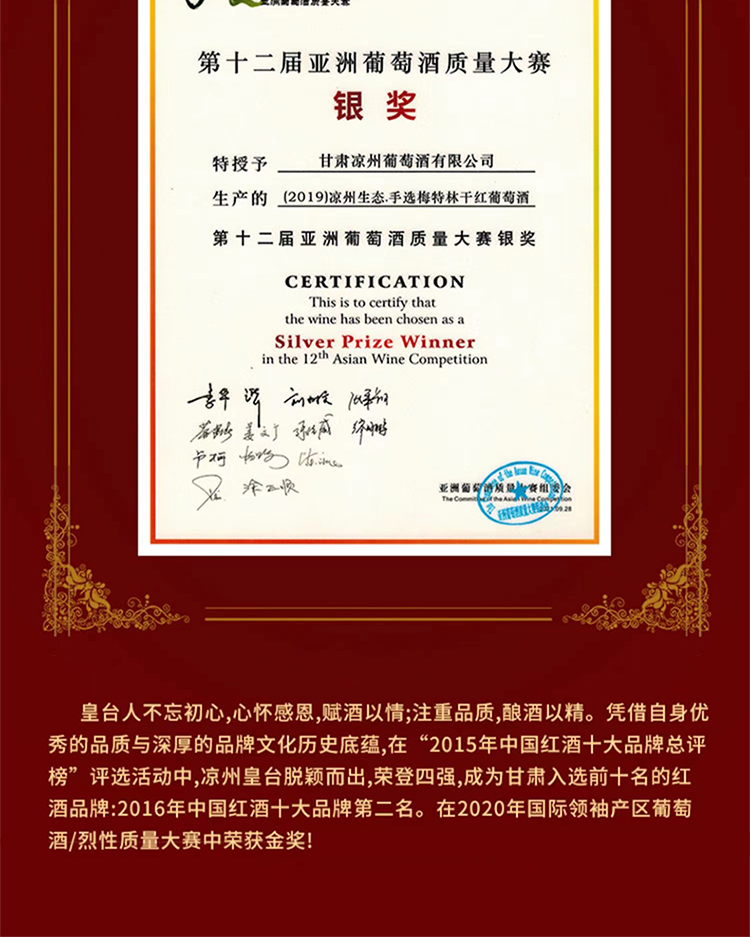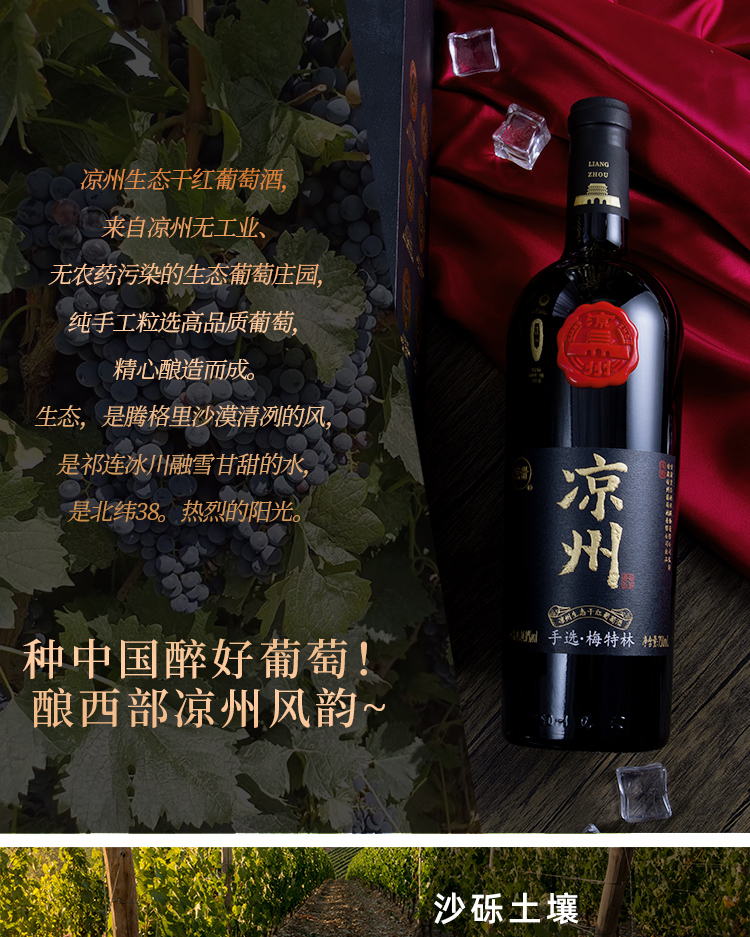 酒品名稱:涼州生態干紅葡萄酒 (漢韻)手選·梅特林