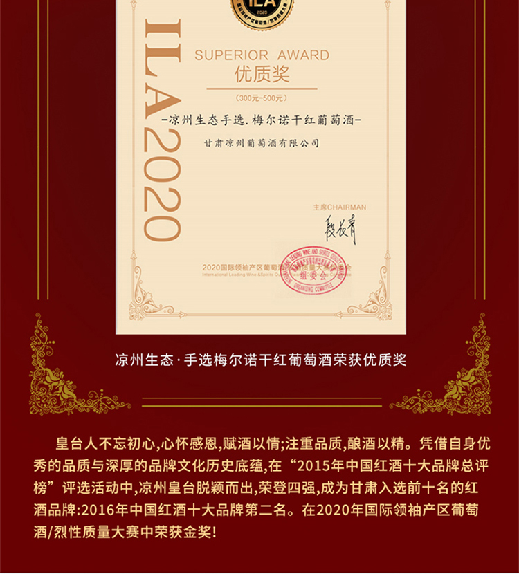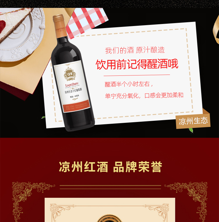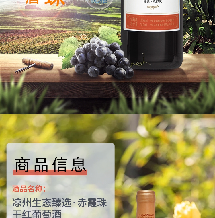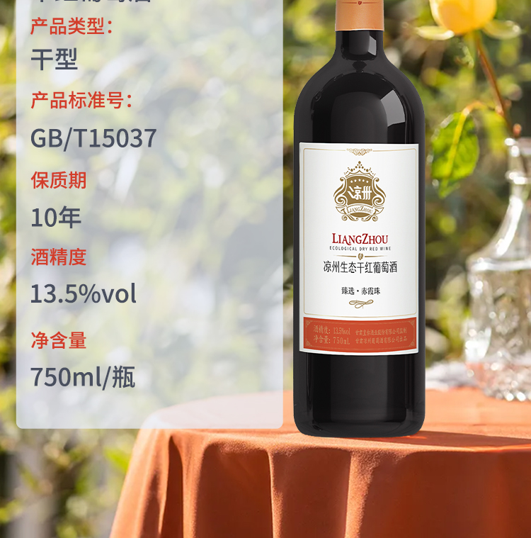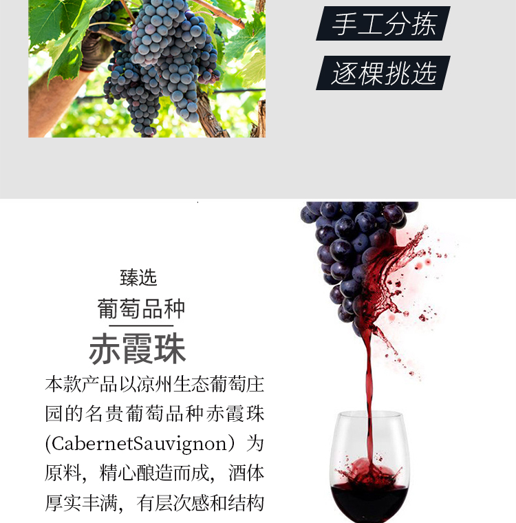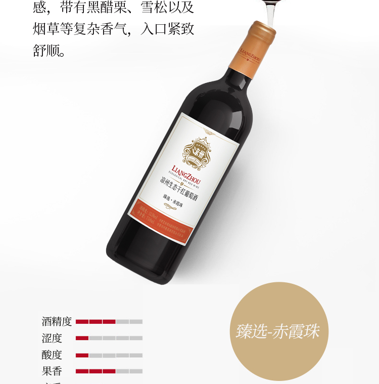 酒品名稱:涼州生態臻選·赤霞珠干紅葡萄酒