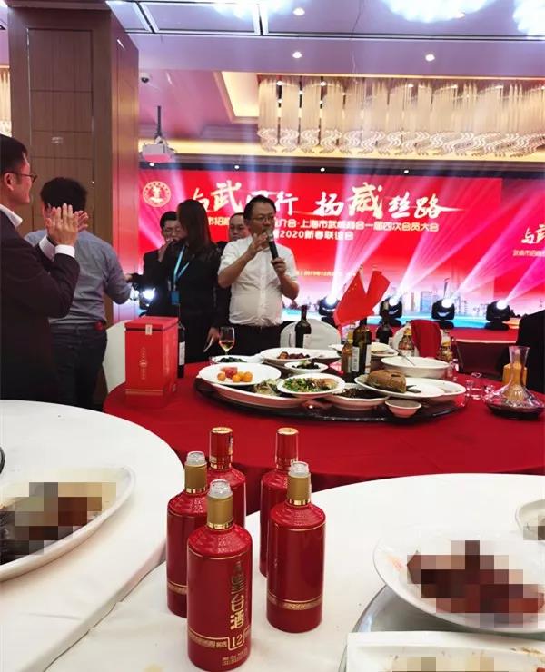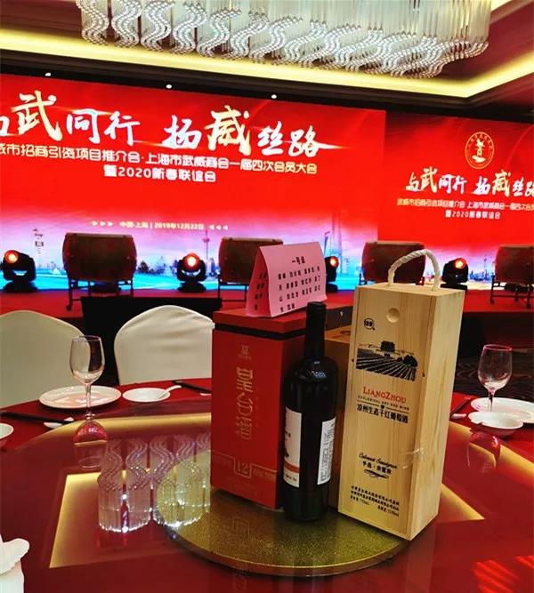 12月22日,在上海舉行的“與武同行 揚威絲路”上海市武威商會一屆四次會員大會暨2020新春聯誼會上,皇臺酒作為聯誼會商務用酒,耀眼地出現在了餐桌上。