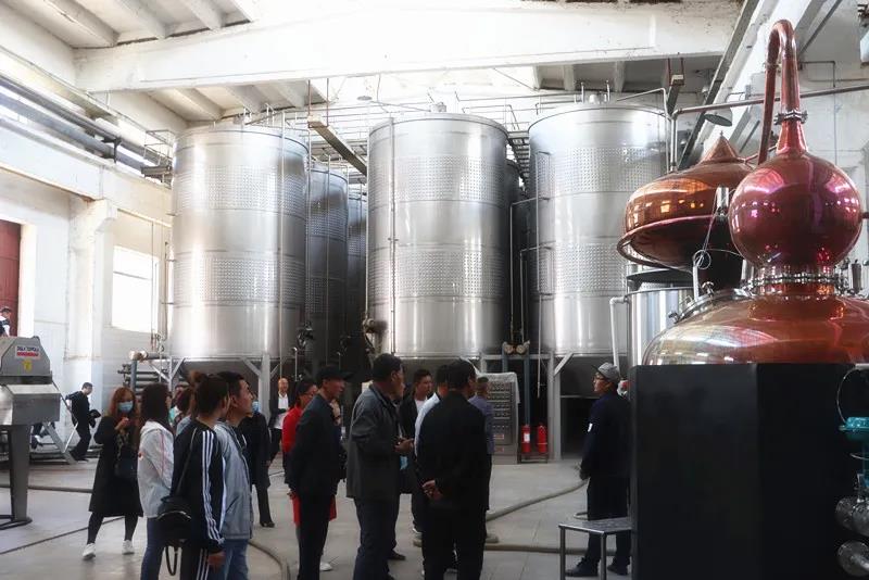 在葡萄酒壓榨車間,大家參觀了皇臺酒業先進的立式、臥式葡萄酒灌,了解了皇臺葡萄產業的發展情況;在葡萄酒貯藏車間,品味了葡萄原酒。