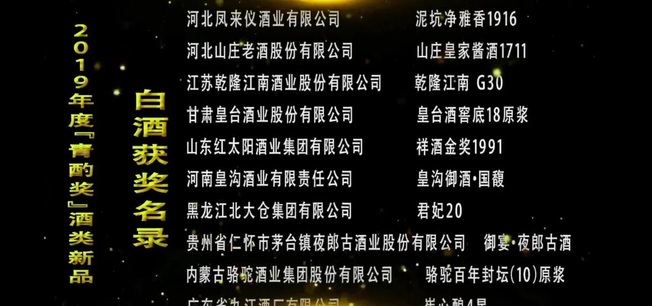 同日,中國酒業協會在酒博會上發布了2019年度「青酌獎」酒類新品榜單,這是中國酒行業酒類新品的最高獎項,皇臺窖底原漿18在全國眾多品牌中脫穎而出,榮獲「青酌獎」酒類新品獎。