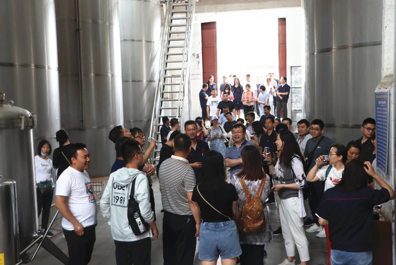 參觀團一行在葡萄酒灌裝車間,察看了先進的葡萄酒灌裝生產線;在葡萄酒貯藏車間,大家參觀了立式罐和臥式罐,品味了葡萄原酒。