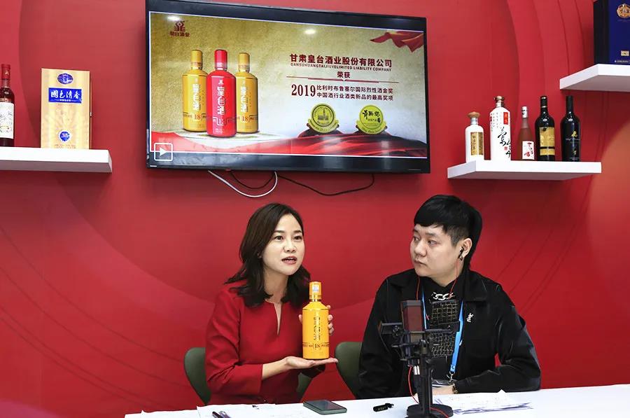皇臺酒業代表趙敏在酒博會直播間為線上觀眾介紹皇臺酒