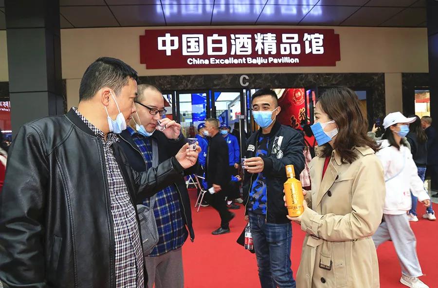 酒博會上2020年最佳白酒新品展示區,第二排左二為皇臺窖底原漿18