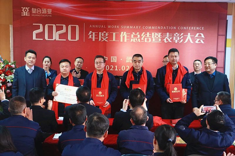 2021年2月6日上午,皇臺酒業2020年度工作總結暨表彰大會勝利召開。公司董事長趙海峰,公司領導曹莽,總經理楊利兵,副總經理、生產總工程師陳兵,董事會秘書彭晶,財務總監王克西出席了此次大會。
