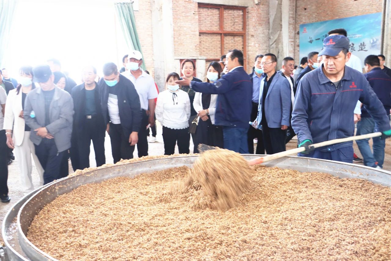 在生產釀造車間,大家看到一粒粒飽滿的釀酒原糧、聽講解員講解原糧嚴格的抽檢篩選標準要求時,了解五糧醇香,單窖循環法工藝時,他們連連稱贊:純糧釀造為美酒之根本,皇臺酒業檢驗原糧的嚴謹,和獨特的釀酒藝,正是皇臺酒業質贏天下、日益發展壯大的有力保證。