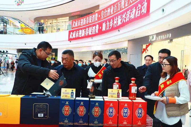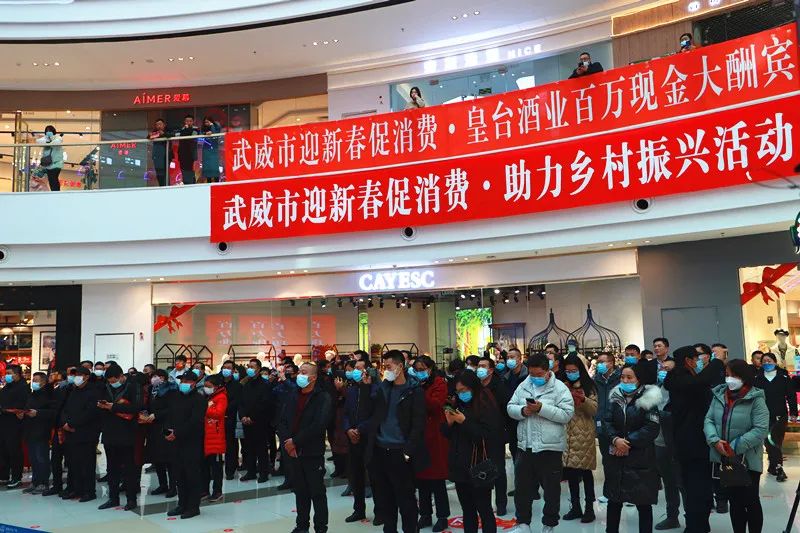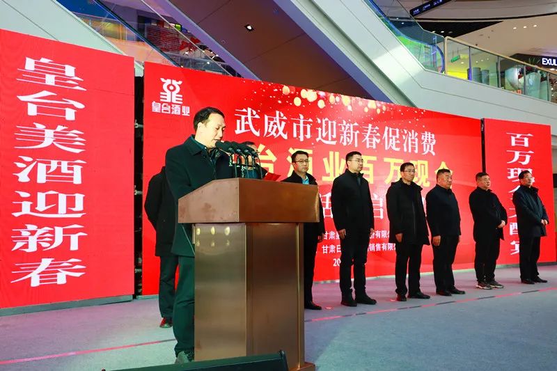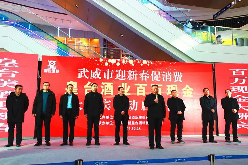 12月28日,皇臺酒業“皇臺美酒迎新春 百萬現金大酬賓“活動啟動儀式在萬達廣場熱烈開展。武威市、區相關部門領導和皇臺酒業總經理楊利兵,董事、副總經理代繼陳,財務總監魏萬棟等領導,以及商場消費者上百人,共同參與了啟動儀式。