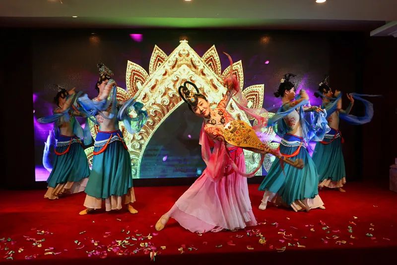 啟程儀式期間,盛達集團董事長趙滿堂先生傾心創作的《絲綢之路上的美酒》優美動聽,情真意切,音律躍動之間,將皇臺美酒的歷史傳承和發展深情演繹;精彩的《開場鼓舞》,躍動時代的步伐,鏗鏘有力;《絲路飛天》,妙曼靈動,舞姿翩躚。節目精彩紛呈,餐敘環節,大家共敘友情,共話合作,品味皇臺美酒,暢談發展大計。