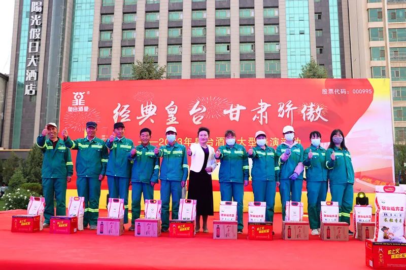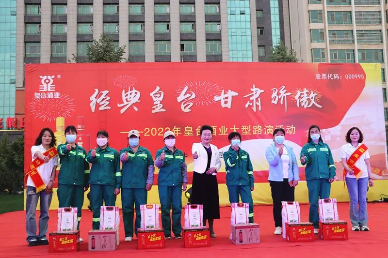 在路演活動現場,為感謝古浪縣廣大消費者對皇臺酒業的厚愛和支持,皇臺酒業特攜古浪亞細亞有限公司,向古浪縣綠化工作者獻上愛心物資,感謝她們為古浪的城市建設付出的辛苦勞動,古浪縣城因她們而更精彩,更美麗。
