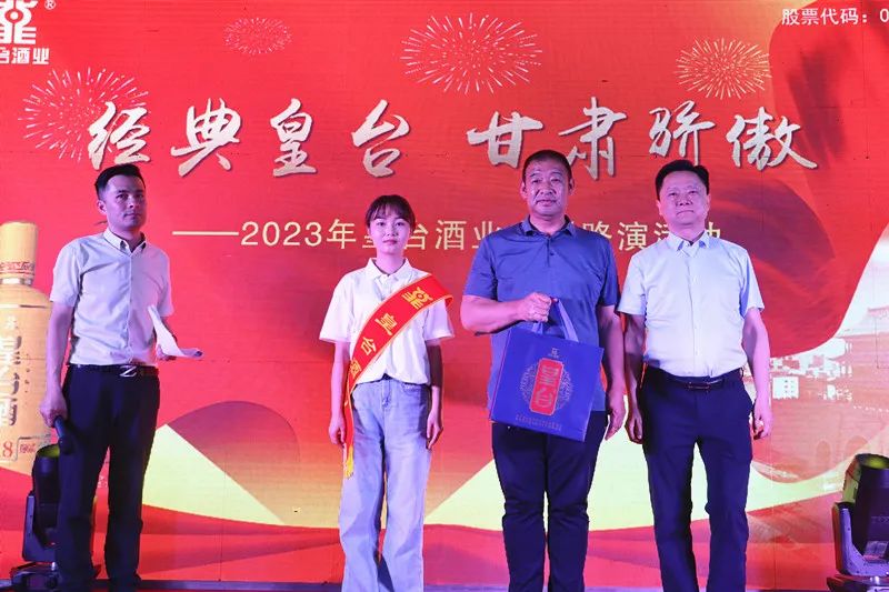 民勤縣經銷商海金批零部許海云許總發言時說:在父親節來臨之際,皇臺酒業為民勤的父老鄉親不僅奉獻了皇臺美酒,還奉獻了精彩紛呈的節目表演,感謝皇臺酒業幾十年來為民勤人民帶來高品質的純糧釀造酒,近幾年,皇臺賓系列以及醉涼州在民勤市場被消費者廣泛接受,好品質的酒使商家賣得安心,同時也讓消費者喝得放心,許總代表民勤的經銷商以及廣大消費者,祝愿皇臺的事業蒸蒸日上,更上層樓。
