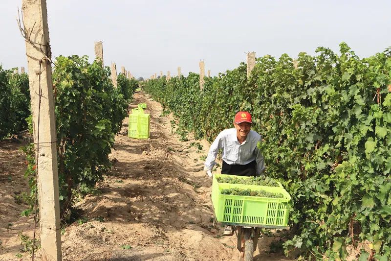 天時地利人和。皇臺酒業(yè)涼州葡萄莊園地處祁連山北麓,有著獨特的地理位置和區(qū)位優(yōu)勢,充沛的日照,以及少雨蒸發(fā)量大的氣候特點,再加葡萄種植人員的精心管理,使今年的葡萄迎來一個喜人的豐收年。
