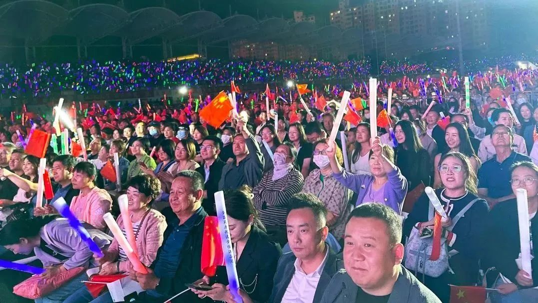現場氛圍隨著音樂的節奏越來越熱烈,觀眾們揮舞著手中的熒光棒,大聲跟唱著經典歌曲。