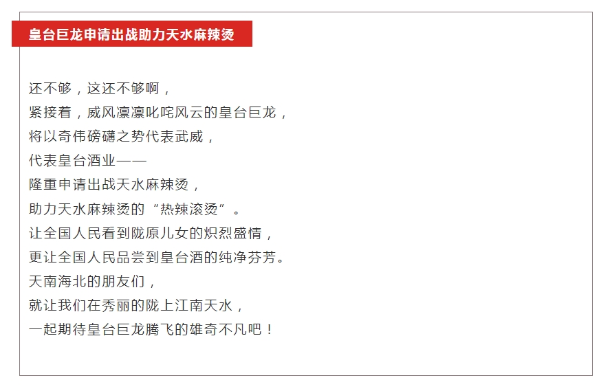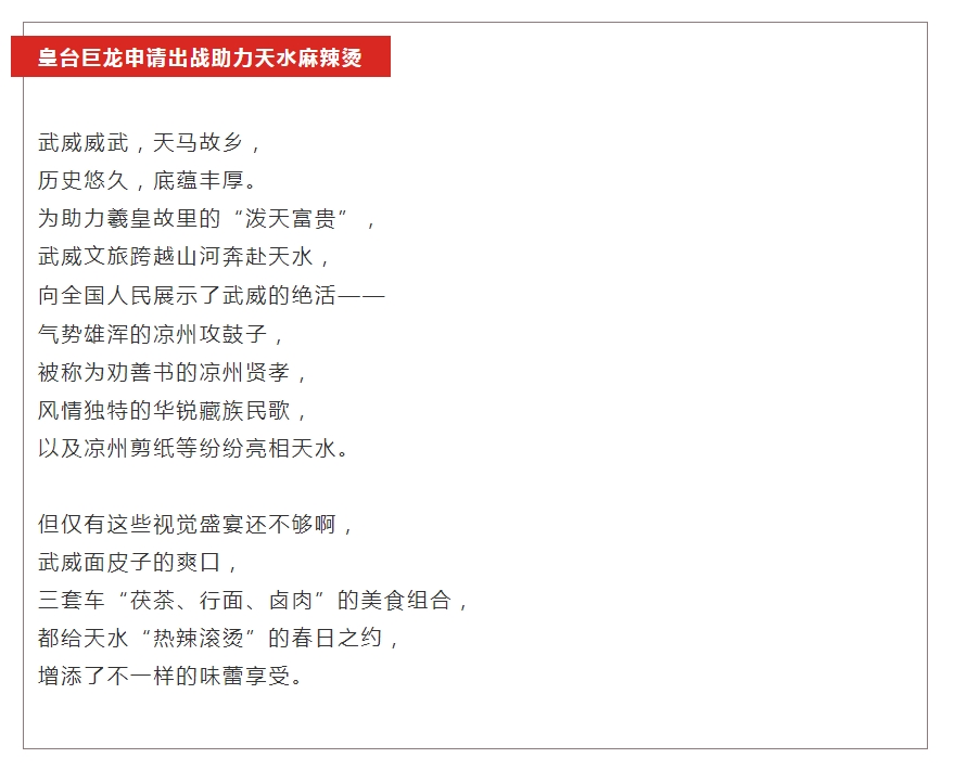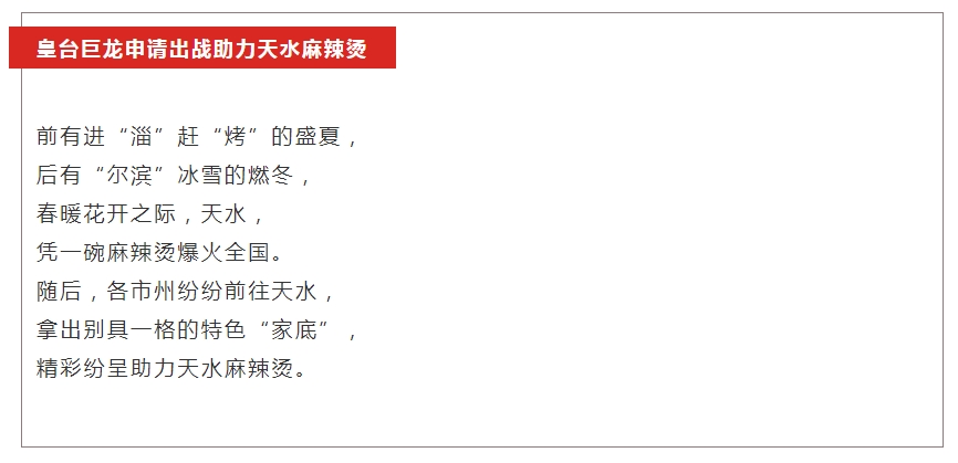 號外|皇臺巨龍即將奔赴千里,出戰助力天水麻辣燙!