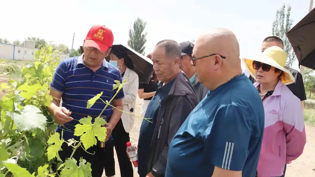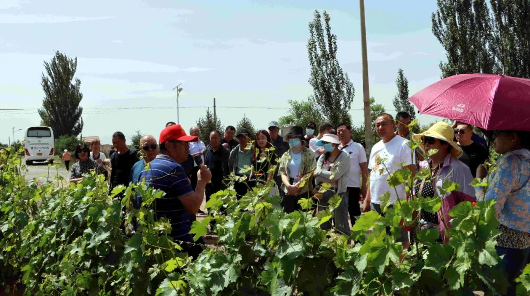 當(dāng)日午飯后,張掖客戶抵達(dá)涼州葡萄生態(tài)種植園,參觀了綠意盎然的葡萄園。涼州葡萄生態(tài)種植園是皇臺(tái)酒業(yè)旗下的子公司,于1999年斥資2億元?jiǎng)?chuàng)建。經(jīng)過(guò)20多年的汗水澆灌與不懈拼搏,現(xiàn)已形成占地達(dá)5000畝的葡萄種植基地。