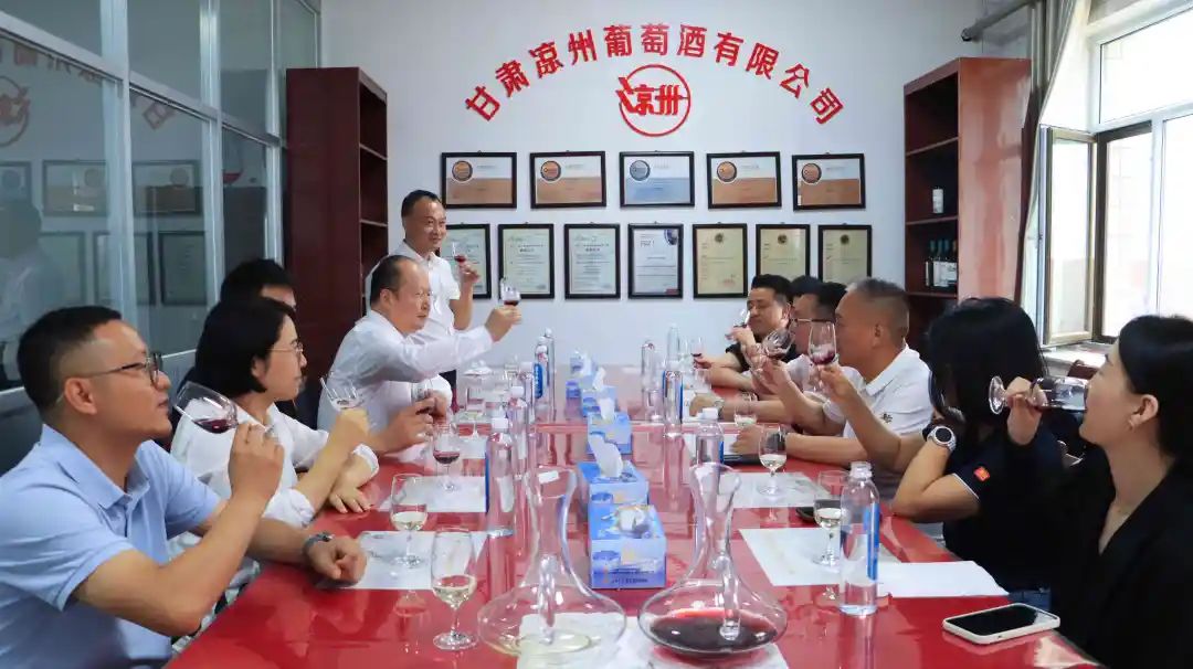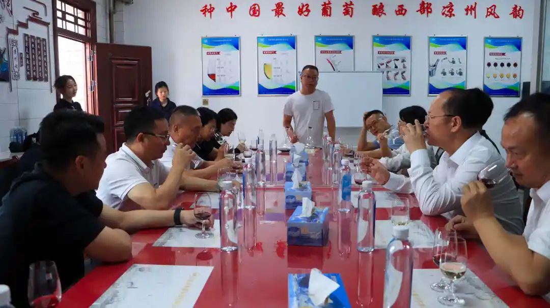在葡萄酒品鑒室,大家品鑒了涼州生態(tài)手選·貴人香干白葡萄酒和涼州生態(tài)手選·梅特林干紅葡萄酒。這兩款葡萄酒特色鮮明,透著濃郁的西北風(fēng)情。