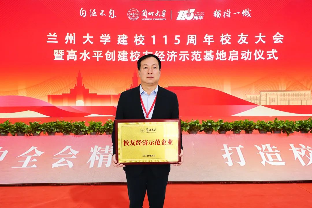在隨后的大會現(xiàn)場頒獎及授牌儀式中,嚴(yán)純?nèi)A向?qū)μm州大學(xué)教育事業(yè)作出顯著貢獻(xiàn)的個人及企業(yè)代表頒發(fā)了獎項(xiàng)。甘肅皇臺酒業(yè)股份有限公司榮獲“校友經(jīng)濟(jì)示范企業(yè)”榮譽(yù)獎牌,總經(jīng)理代繼陳代表公司上臺領(lǐng)獎。