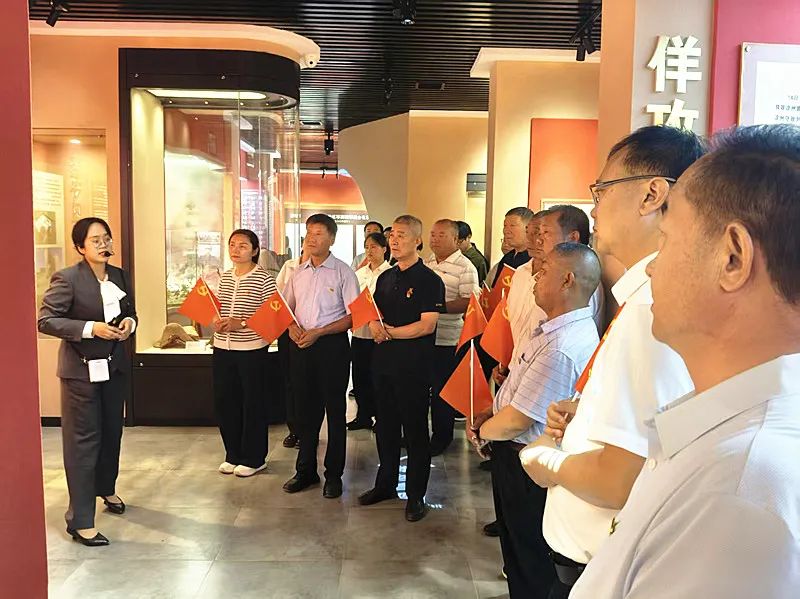 全體黨員在四十里堡英雄紀念碑前莊重舉行憑吊儀式,敬獻花籃,并重溫入黨誓詞。在講解員的引導(dǎo)下,大家參觀了各個展區(qū)。展覽綜合運用聲光電等現(xiàn)代展示手段,通過敵我攻防態(tài)勢圖、珍貴實物、歷史影像等,全面而系統(tǒng)地生動還原了戰(zhàn)前、戰(zhàn)中與戰(zhàn)后的歷史情景。通過參觀,大家直觀感受到四十里堡血戰(zhàn)三晝夜的慘烈悲壯,深切體會到紅30軍英雄部隊的赫赫神威及其在戰(zhàn)斗中付出的巨大犧牲和英勇付出。全體黨員跟隨講解員的講述,共同追憶那段波瀾壯闊、浴血奮戰(zhàn)的崢嶸歲月,接受了一次深刻的紅色文化洗禮。