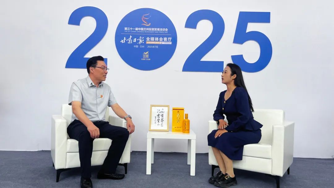 ▲甘肅皇臺(tái)酒業(yè)股份有限公司副總經(jīng)理兼營(yíng)銷(xiāo)總監(jiān)修衛(wèi)華參與蘭洽會(huì)全媒體會(huì)客廳訪談