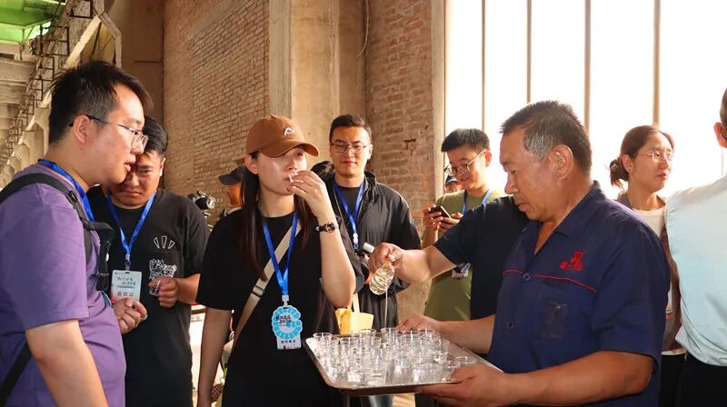 文旅創作者團隊攜帶著專業攝影設備,依次探訪了涼州酒文化展覽室、釀酒生產車間、半成品酒庫以及葡萄酒儲存車間。在釀酒車間,大家“觀糧醅、聞酒香、品原漿”,現場品鑒了熱氣騰騰的原度酒,了解了皇臺“小窖佳釀”的釀酒工藝,見證美酒從原料到佳釀的奇妙蛻變;尤其是蔚然壯觀的白酒半成品庫,堪稱網紅打卡地,更是令文旅創作者們深感震撼,手機、相機頻頻閃爍,大家通過鏡頭捕捉皇臺酒的醉人芬芳。