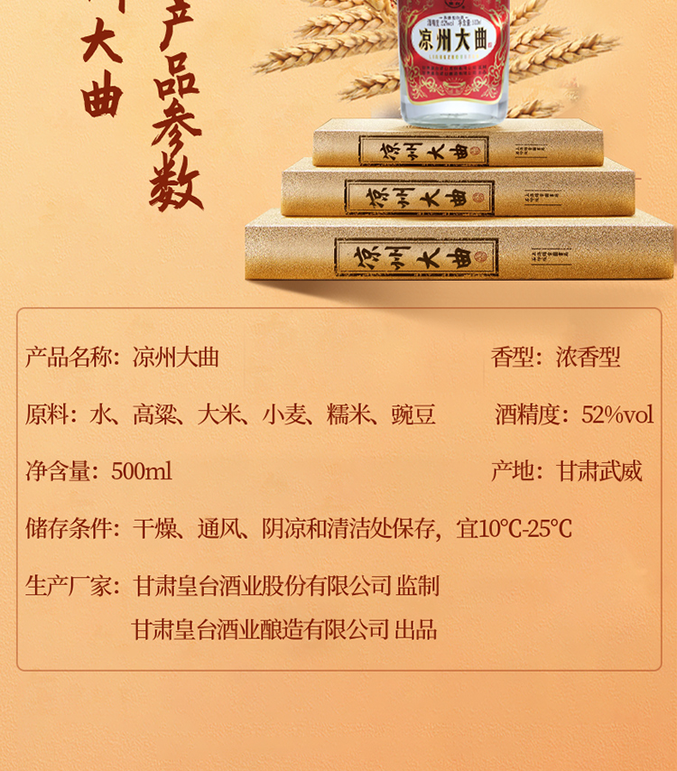 生產廠家:甘肅皇臺酒業股份有限公司監制