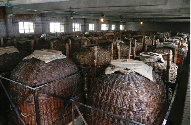藤條編制的酒海子,是如何制作?如何盛住酒的呢?是這樣,先要在酒海子里面糊上纖維粗糙的麻紙,然后用豬血、白臘等混合物,一層一層涂覆,涂覆一層,晾干后再涂覆,如此循環反復,足足要涂覆六十二層,最后用熟菜油、雞蛋清、加蜂蠟按一定比例,常溫混合均勻涂覆始成,方可盛酒。整個過程就像制作玻璃鋼儲罐一樣,平整光滑,密實無隙,層壓接縫要均勻,豬血灰涂要均勻,才能無“跑冒滴漏”。酒海子如此這般的特殊制工藝,使其呈現出一個神奇的現象,即:“裝酒滴酒不漏,裝水揮失殆盡。”盛滿唯有裝上美酒,就成一潭清郁醉人的酒海子了,且越放越醇,越放越香。