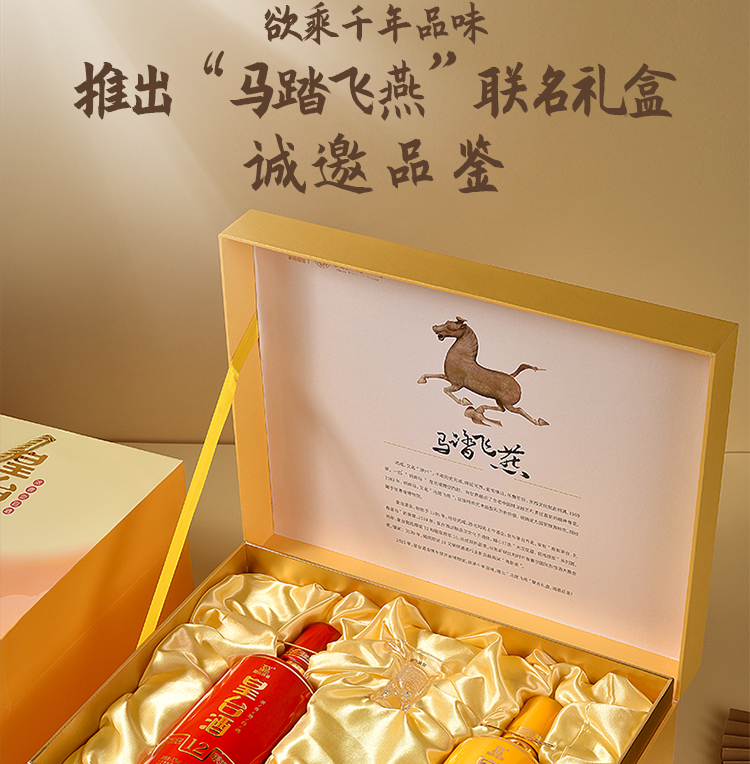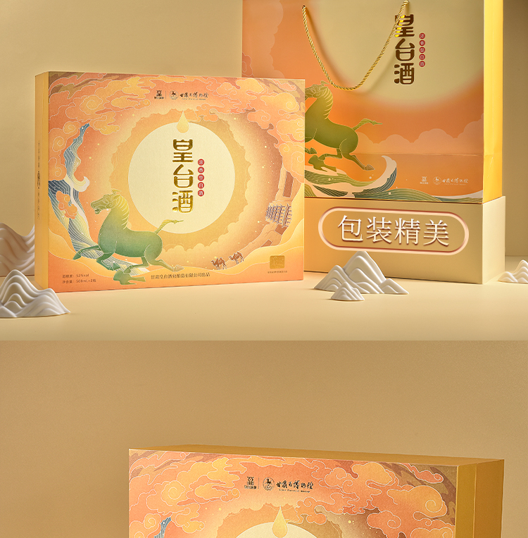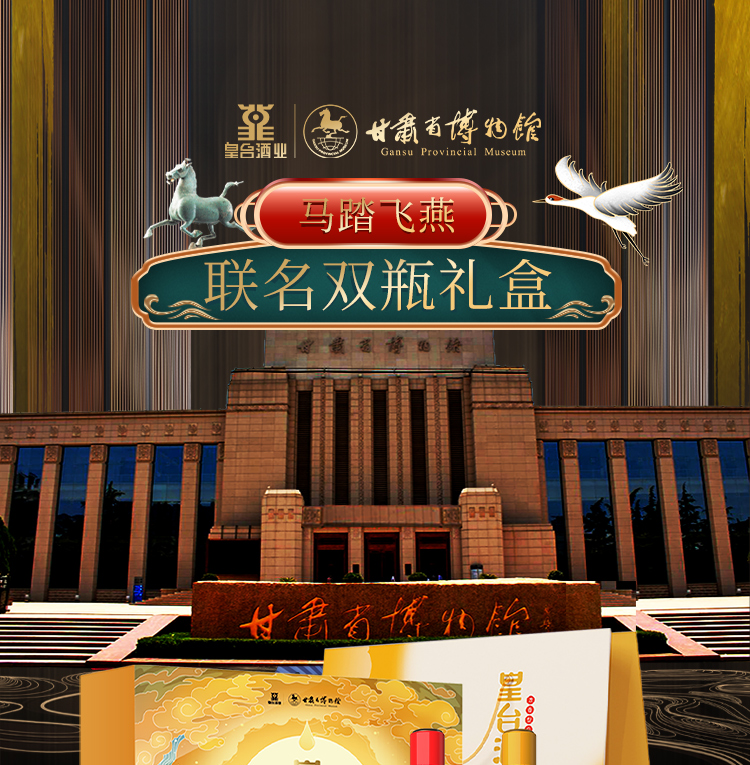 皇臺甘肅博物館馬踏飛燕聯名款禮盒裝52度窖底原漿系列濃香型白酒